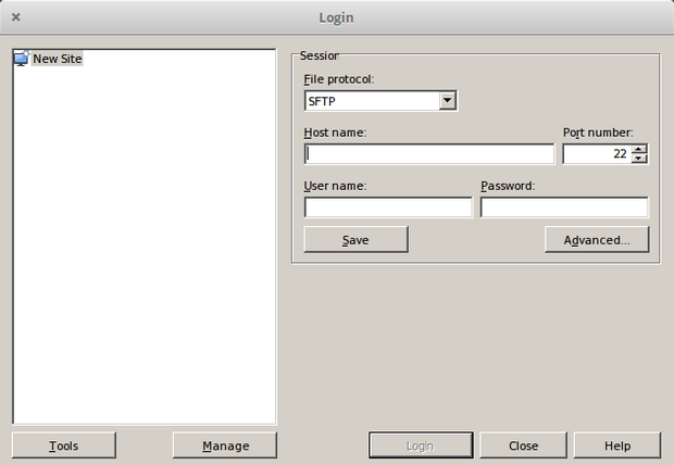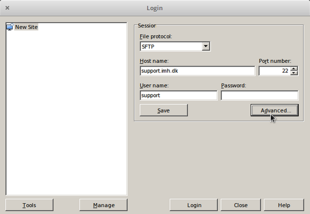 Samme billede vil du se hver gang du starter WinSCP fremover.
