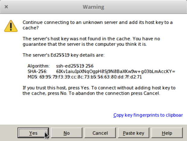 Første gang vil du blive mødt med følgende advarsel. Tryk "Yes" for at fortsætte